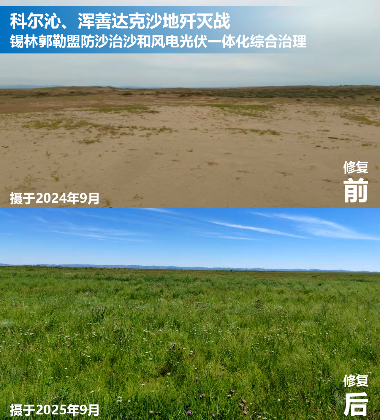 种子包由乡土草种配合微生物菌剂和高分子保水微颗粒组成,适应沙化草地、半流动沙地、退化草原、盐渍化草原等不同生态类型区域,在“三北”工程三大标志性战役中应用成效明显,提升植被盖度35%以上、多年生植物占比40%以上,实现近自然、高效率、可持续的修复效果。