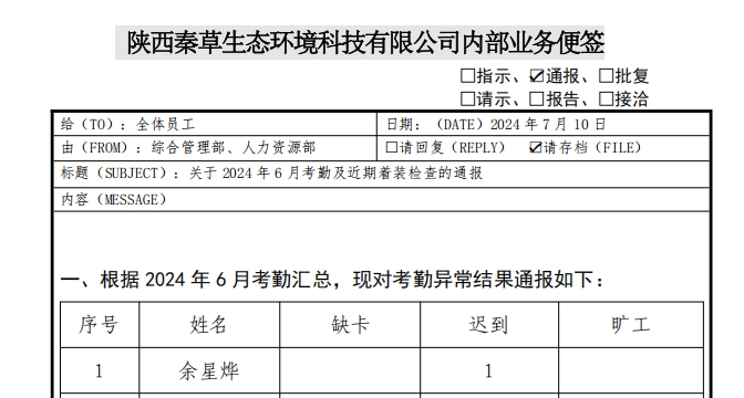 关于2024年6月考勤及近期着装检查的通报.pdf[详情]