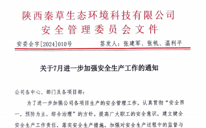 秦草安委会字2024-010号关于进一步加强7月安全生产工作的通知