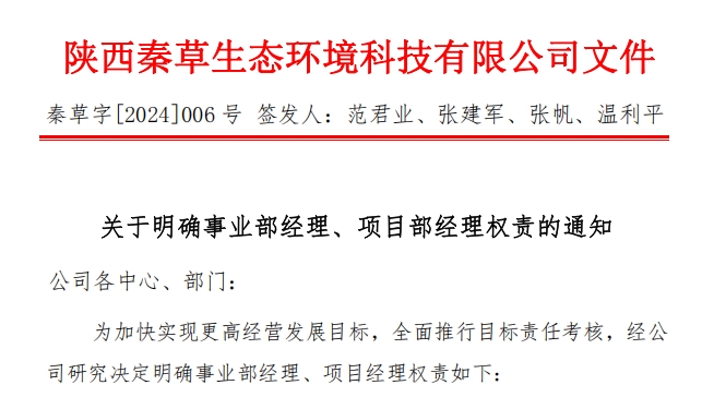 2024-006号 《关于明确事业部经理、项目部经理权责的通知》