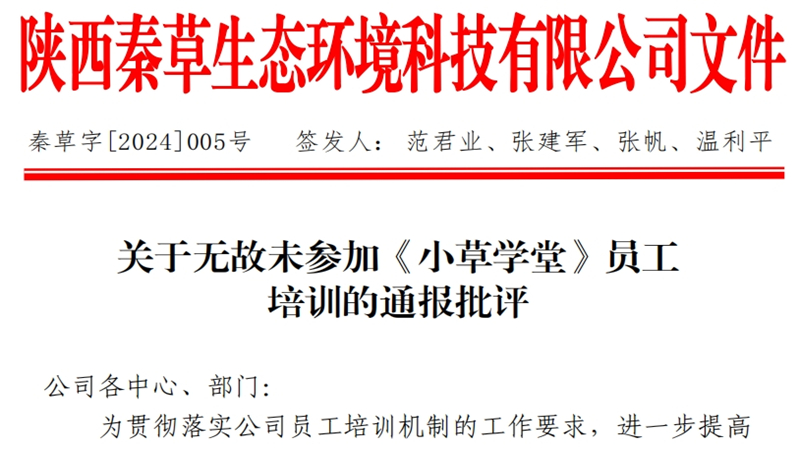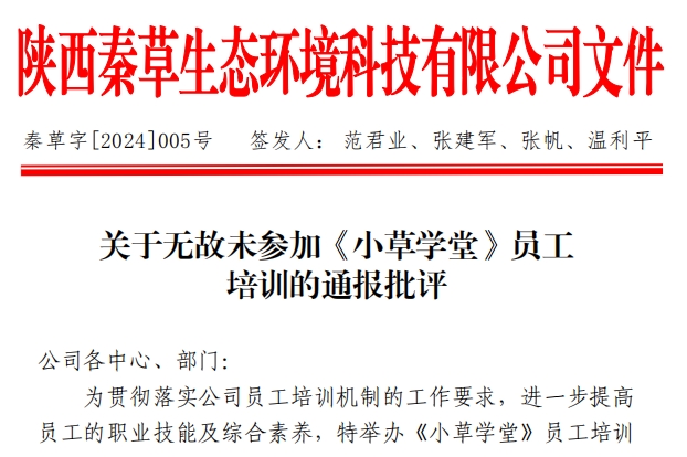 关于无故未参加《小草学堂》员工培训的通报批评[详情]