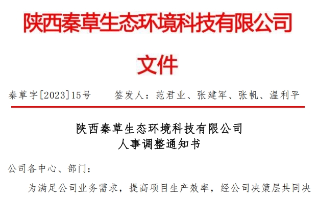人事调整通知书(朱建国、王靖勃)