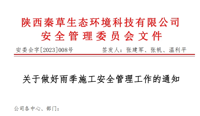 秦草安委会字2023-008号关于做好雨季施工安全管理工作的通知
