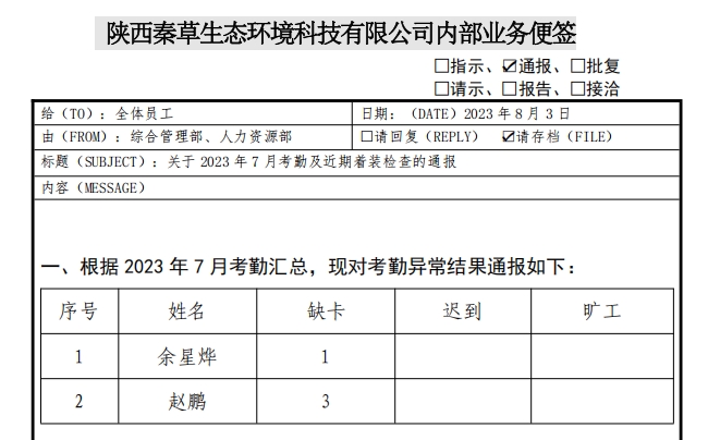 关于2023年7月考勤及近期着装检查的通报.pdf[详情]