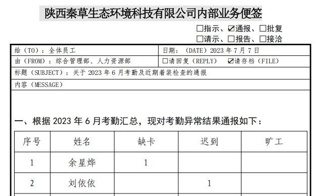 关于2023年7月考勤及近期着装检查的通报.pdf[详情]