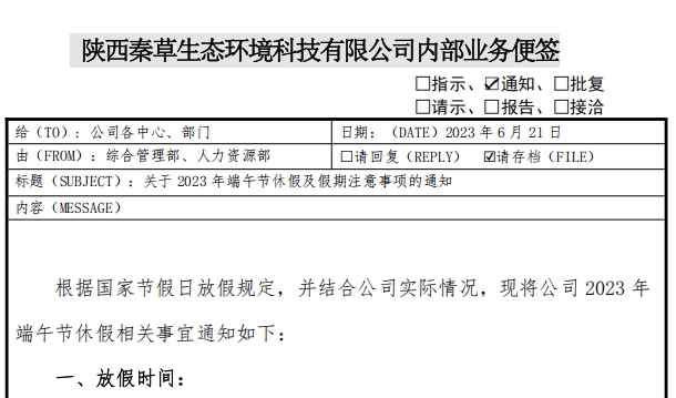 关于2023年端午节休假及假期注意事项的通知
