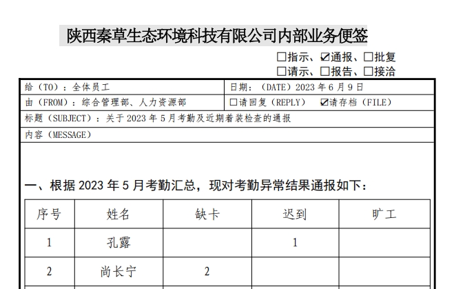 关于2023年5月考勤及近期着装检查的通报.pdf[详情]
