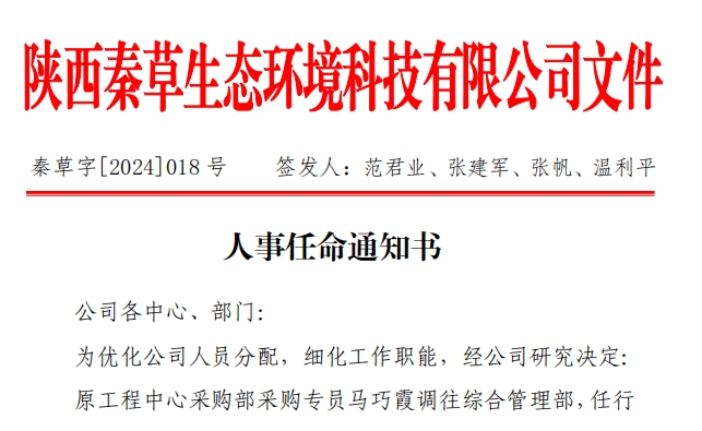 秦草字2024年18号 人事任命通知书(马巧霞).pdf[详情]